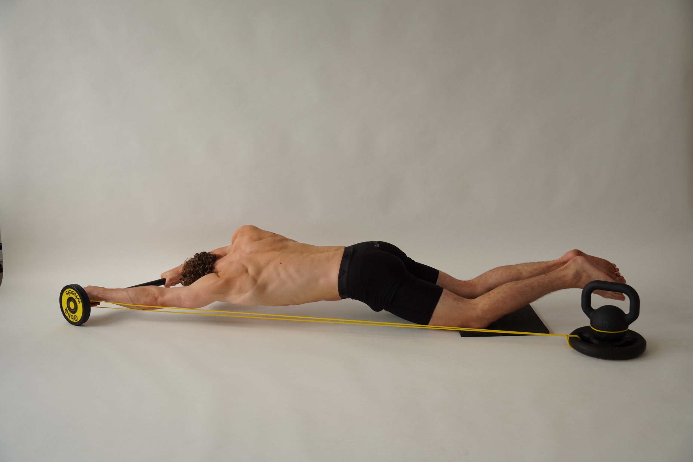 In case you fear the rolling out movement and the point of full extension, you can add extra facilitation by connecting a resistance band. Therefore attach the resistance band to a table leg.